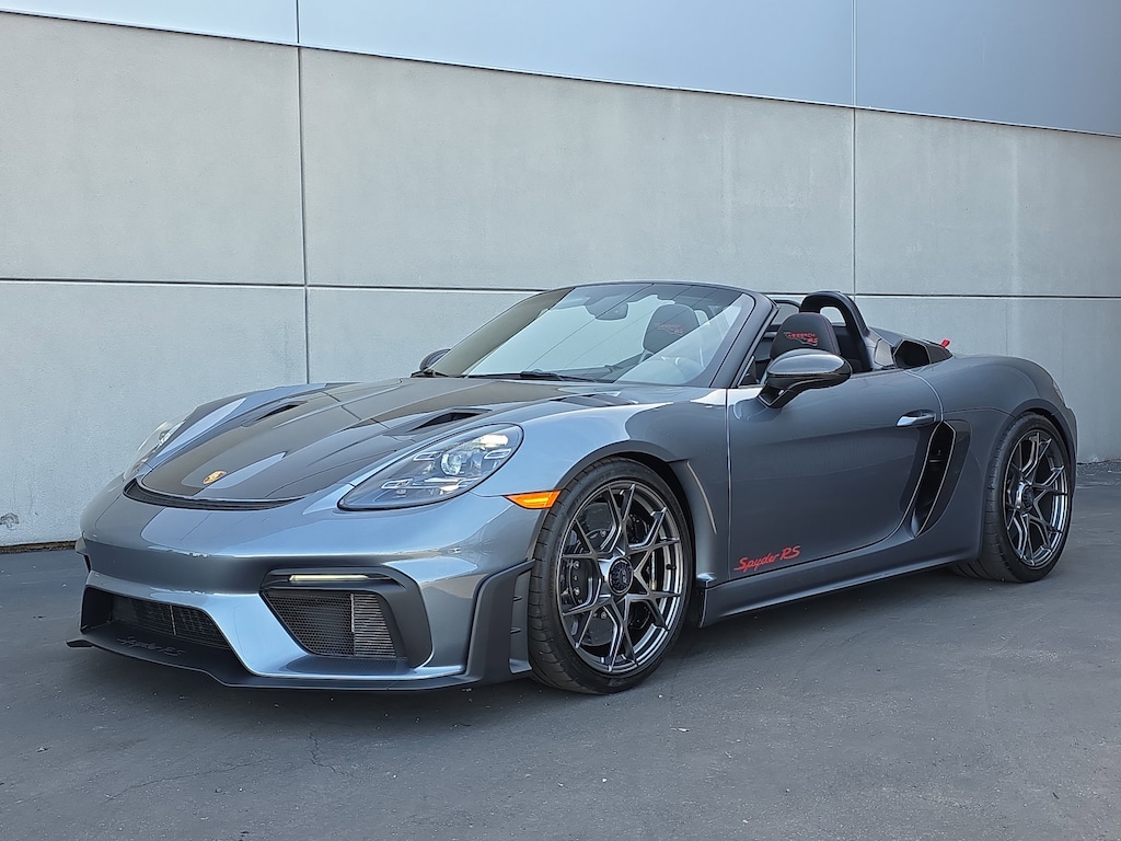 Recent Arrival! Clean CARFAX. This 2025 Porsche 718 Spyder RS in Vanadium Grey Metallic features. Auto Dimming Mirrors with Integrated Rain Sensor, BOSE Surround Sound System, Brake Calipers in High Gloss Black, Chrono Package, Deletion of SiriusXM Antenna, Door Pull Loops in Guards Red, Fire Extinguisher, Front Axle Lift System, Front Trunk Lid in Exposed Carbon Fiber, LED Headlights with Porsche Dynamic Light System, Light Design Package, Luggage Net in Passenger Footwell, Porsche Ceramic Composite Brake, Preparation For Porsche Dash Cam (Front), Seat Belts in Carmine Red, Smartphone Compartment, Smoking Package, Sun Visors in Race-Tex, Two-Tone Leather/Race-Tex Seat Trim with I.c.w. Weissach Pacakge, Voice Control, Weissach Package, Window Triangle Trims in Carbon Fiber, Windshield Frame in Matte Black. Certified.