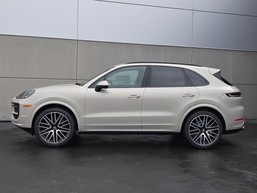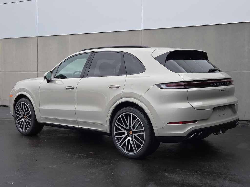 This 2026 Porsche Cayenne in Cashmere Beige Metallic features. Black w/Artificial Leather Seat Trim, 14-Way Power Seats with Comfort Memory, Adaptive Cruise Control with Lane Keep Assist (LKA), BOSE Surround Sound System, Front Ventilated Seats, Model Designation on Rear in High Gloss Black, Panoramic Roof System, Passenger Display, Porsche Crest on Front Headrests, Premium Package, Rear Heated Seats, Roof Rails in Black Aluminum Finish, Sport Tailpipes in Dark Bronze, SportDesign Front Fascia, Trailer Hitch Without Tow Ball, Wheels: 22" 911 Turbo Design, Window Trim in High Gloss Black.